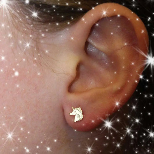 Boucles d'Oreilles Licornes - Or Jaune - Enfant